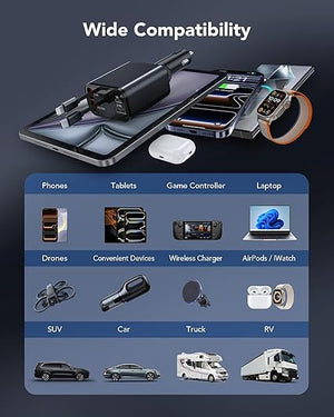 Supports Android smartphones, tablets, power banks, Bluetooth devices, and more